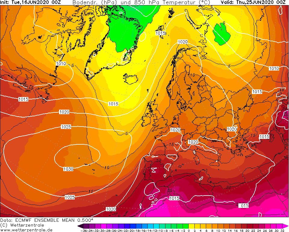 Aangezien het gemiddelde nu op donderdag met 850Hpa temperaturen van 12°C of meer graden komt, dat geeft in de pluim een gemiddelde van zo'n 28°C denk ik...?