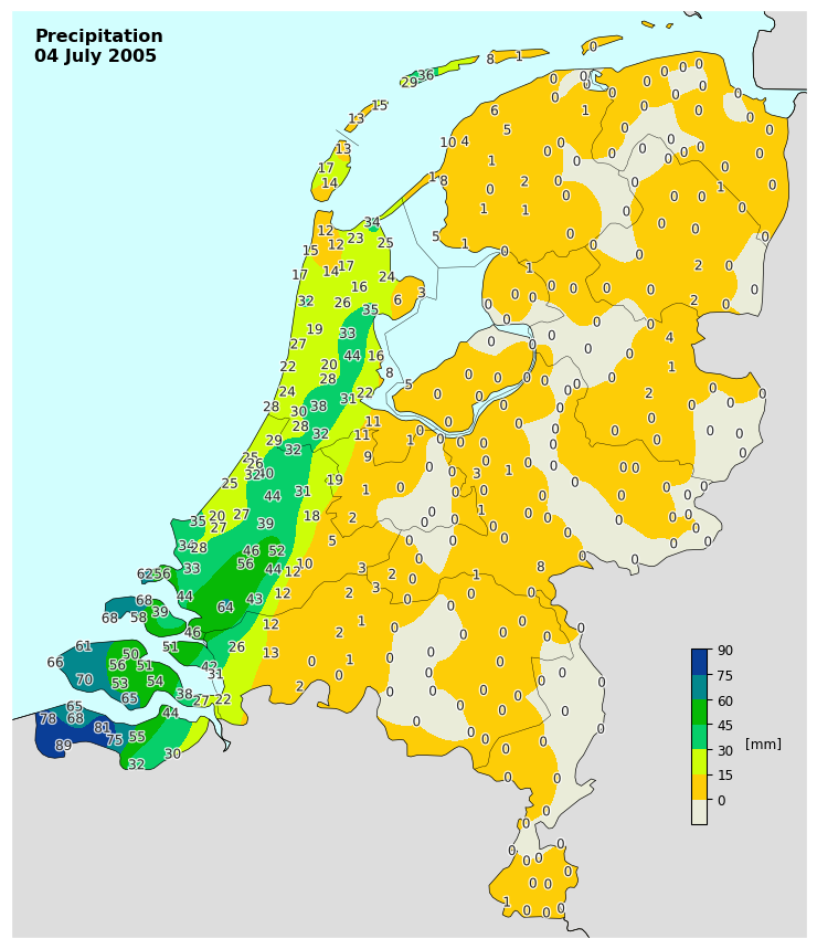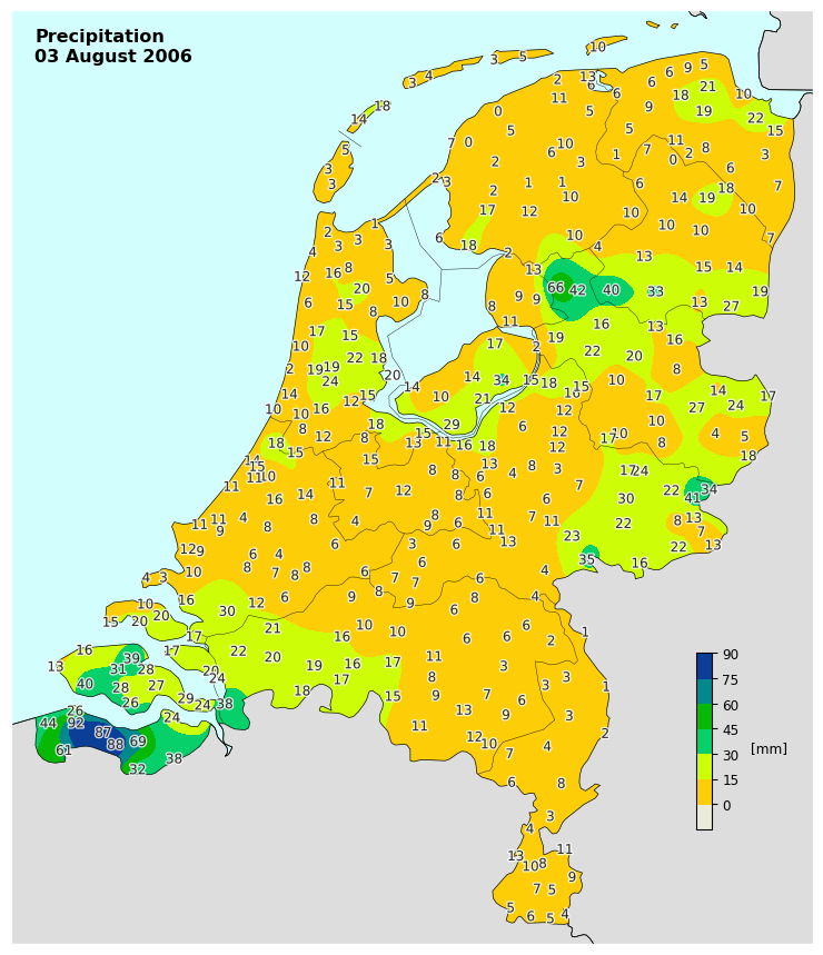 Voor Zeeuws-Vlaanderen liggen de recordwaarden (08-08 UT) zo rond de 90mm.