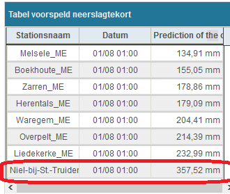 En van hieruit naar het zuiden wordt het eigenlijk nog erger. Tegen de grens met Wallonie is zo'n 100 mm gevallen in die hele periode.