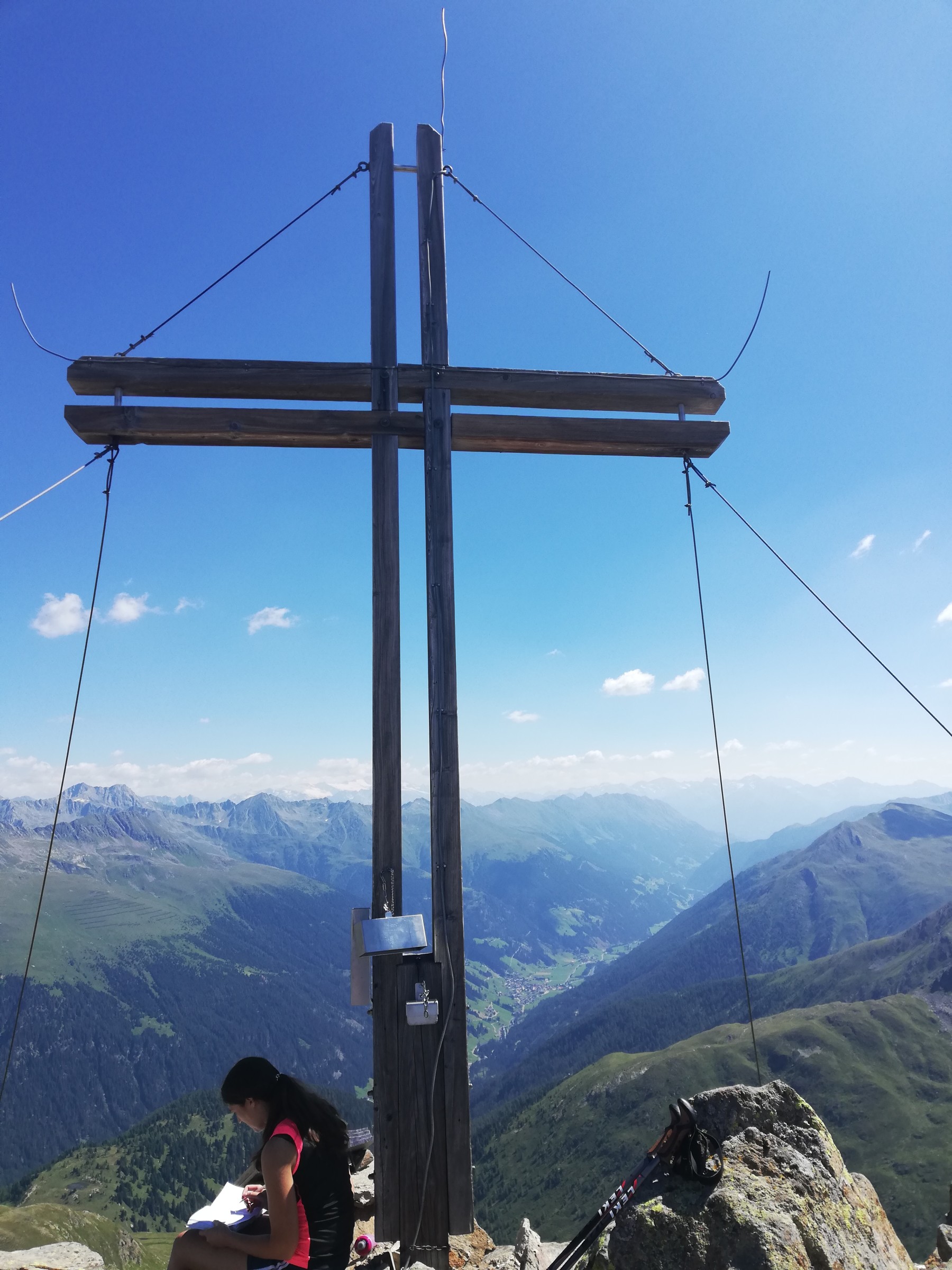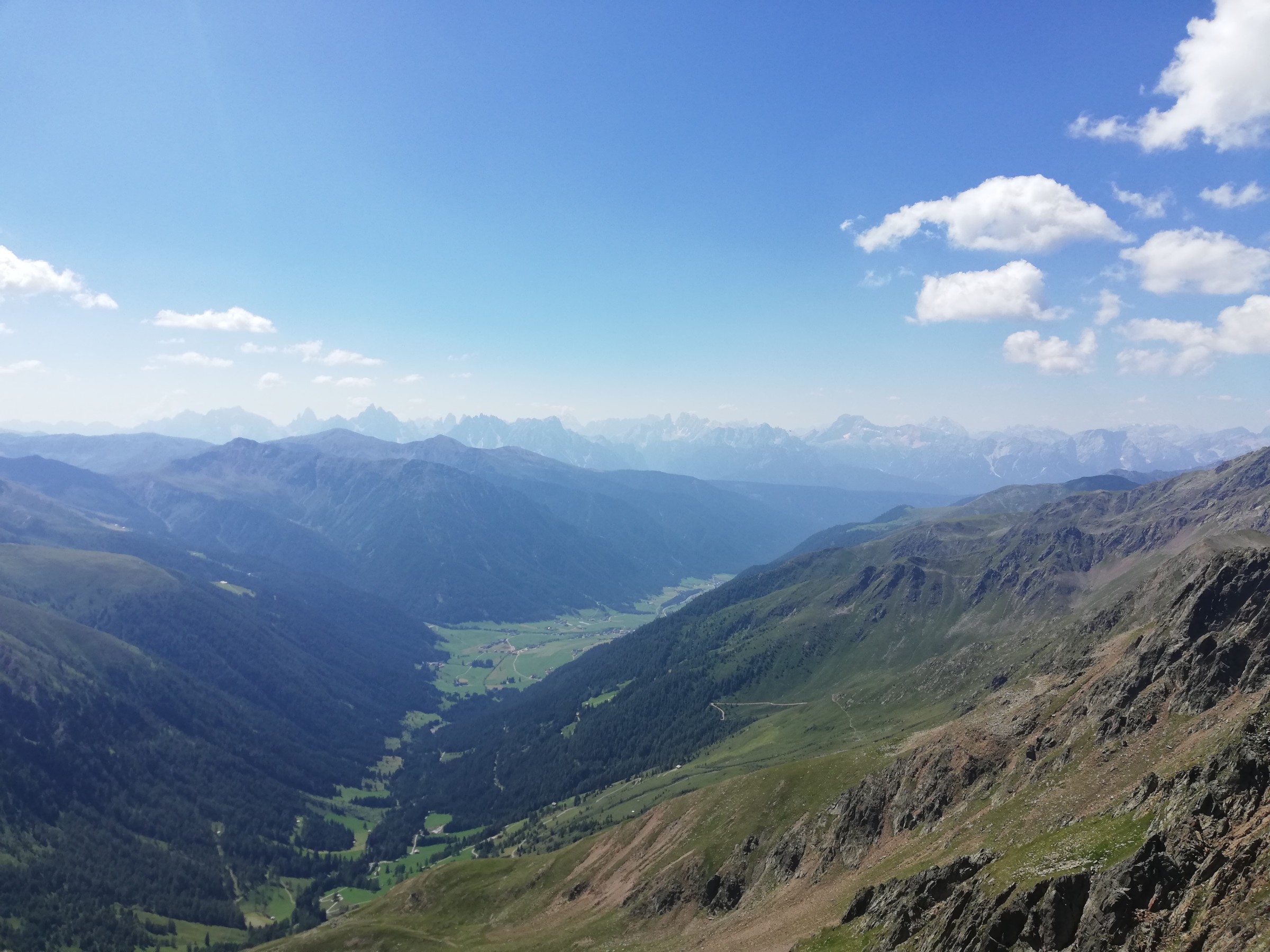 Ik heb de berg van 2819m bedwongen. Hier boven 360° uitzicht op de Dolomieten, Grossglockner en Grosdvenediger.