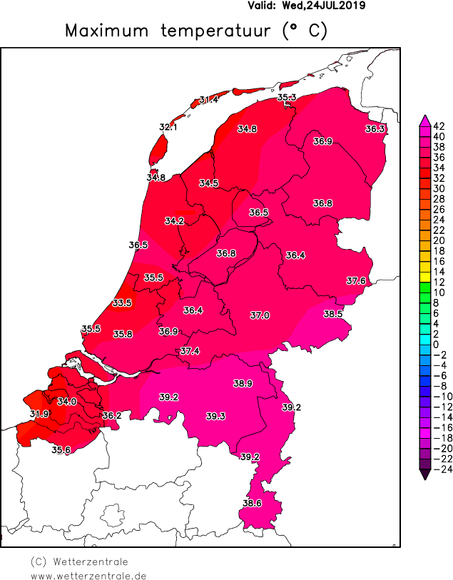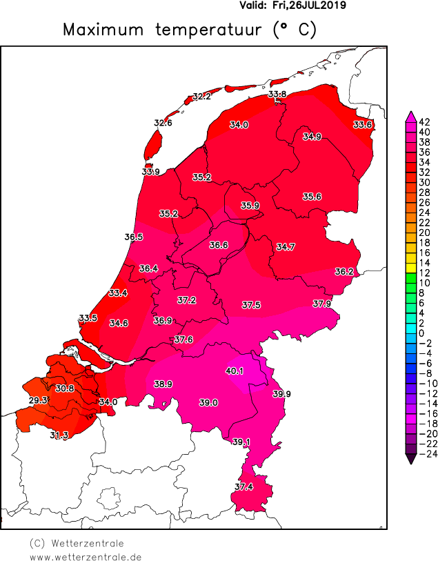 , maar ik kan je vraag wel beantwoorden. Je hebt inderdaad gelijk, alleen 25 en 26 juli werd 40 graden behaald. 24 juli was de Tx 39.3 graden. Hieronder de afbeeldingen van Weergegevens erbij.