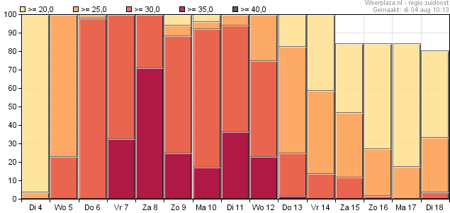 Kansstaafgrafiek Zuidoost dinsdag 4 augustus 00Z run