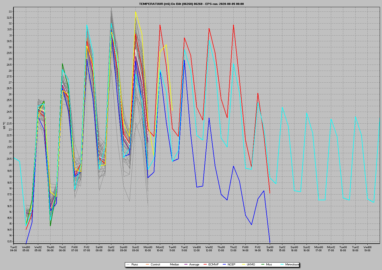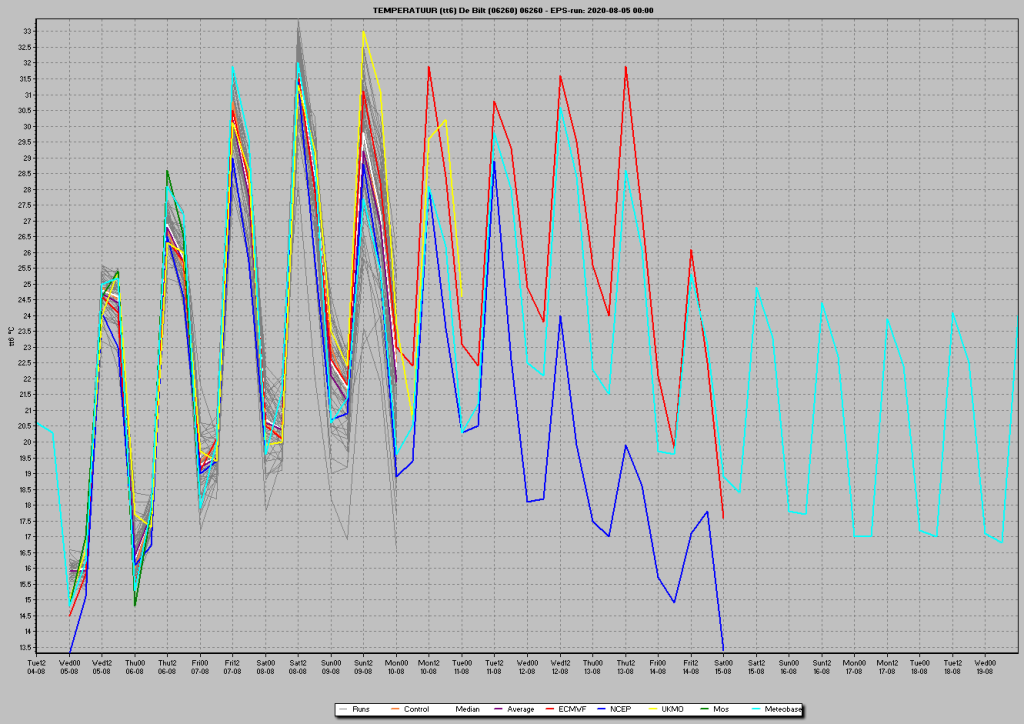 Op basis van ECMWF zouden de verwachte maxima dus zijn:
