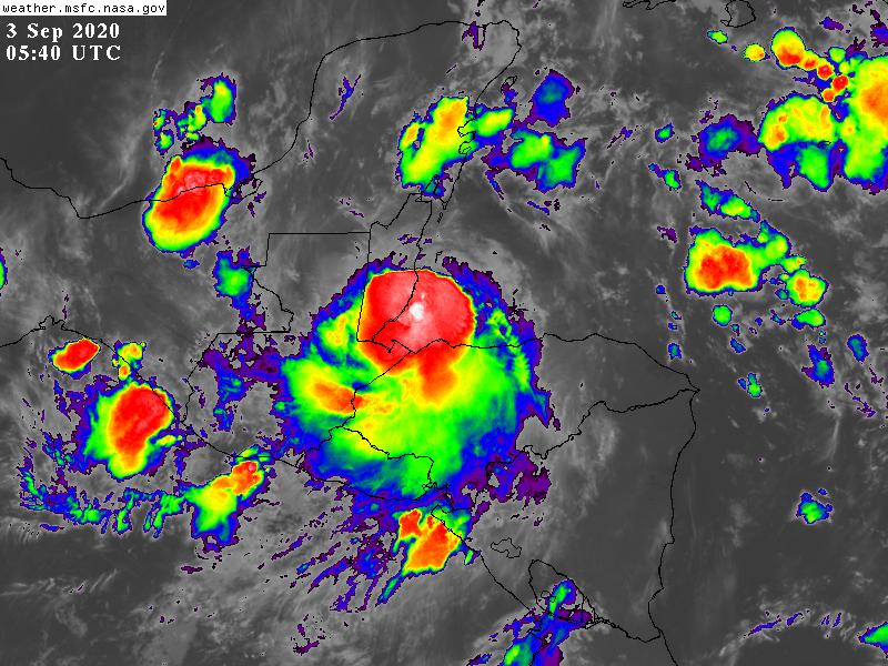 Afgelopen week waren er twee tropische systemen actief in de Atlantische oceaan. De eerste, Nana, groeide uit tot een heuze orkaan en is daarmee de vijfde Atlantische orkaan van dit seizoen. Nana ontwikkelde zich in de Caribische Zee en was de overgrote tijd van haar leven een tropische storm. Net voor landfall sterkte Nana echter aan en kwam op 3 september aan land in Belize met orkaankracht. Significante wind shear in de Caribische Zee voorkwam dat Nana echt verder kon aansterken en heeft daarmee een zwaardere en gevaarlijkere landfall voorkomen. Nana is de eerste orkaan die in Belize aan land komt sinds Earl in 2016. Er zijn berichten dat veel velden met gewassen kapot zijn gegaan, maar de echte schaal van de schade is daarover nog niet echt bekend. In grote gebieden is 200 mm regen gevallen en in Honderus zijn zogenaamde 'flash flood' overstromingen geweest. Ondanks alles zijn er vooralsnog geen doden gemeld en lijkt het er dus op dat Nana gelukkig niet zo destructief was als sommig eerdere Centraal Amerikaanse orkaan landfalls. De overblijfselen van Nana vormden aan de andere kant van het continent later tropische storm Julia, die later in dit overzicht aan bod komt.