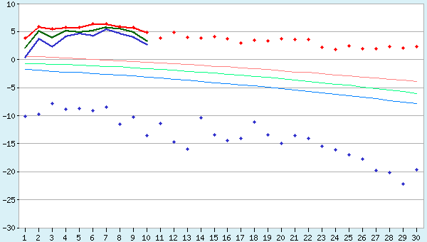 Ik vermoed dat augustus een afwijking had van +4,1°C, dus normaal +0,4°C. Met zoveel dagrecords vanaf half augustus moet er een forse positieve afwijking zijn. En als je de de normaal-lijn ziet in de grafiek van september, dan kan deze een maand eerder maar net boven nul liggen.