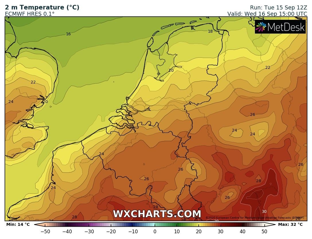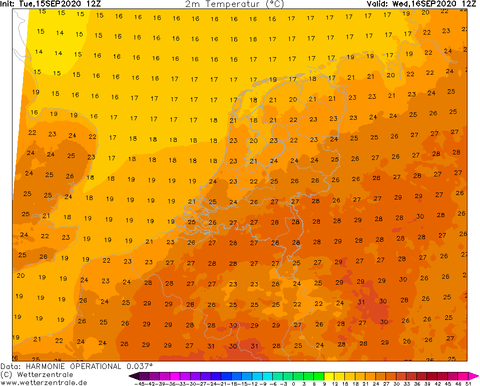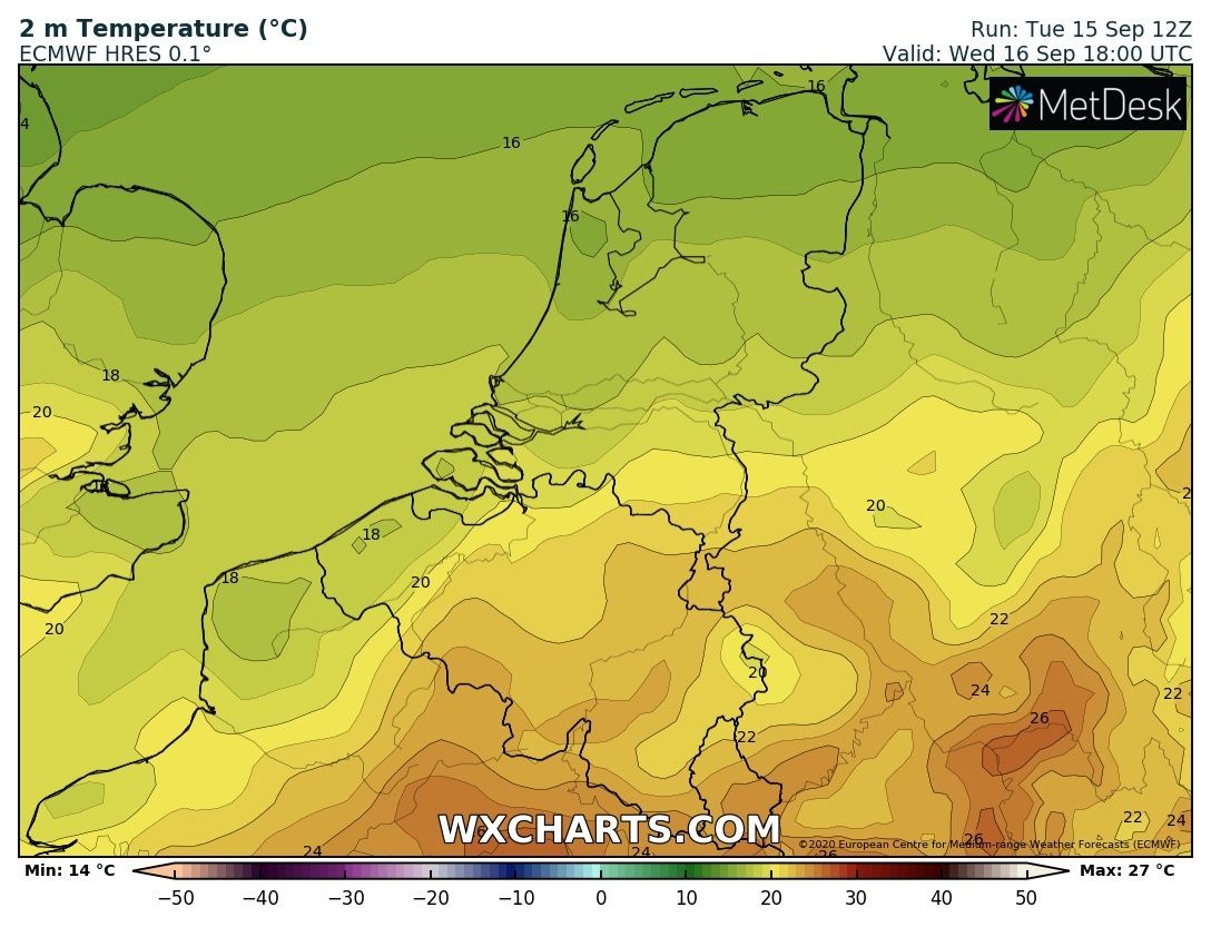 En dan volgt er een frisse nacht.... Begin volgende week gaan we alweer naar de 25 C...