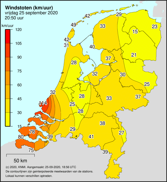 En een windstoot van 114 km/h.