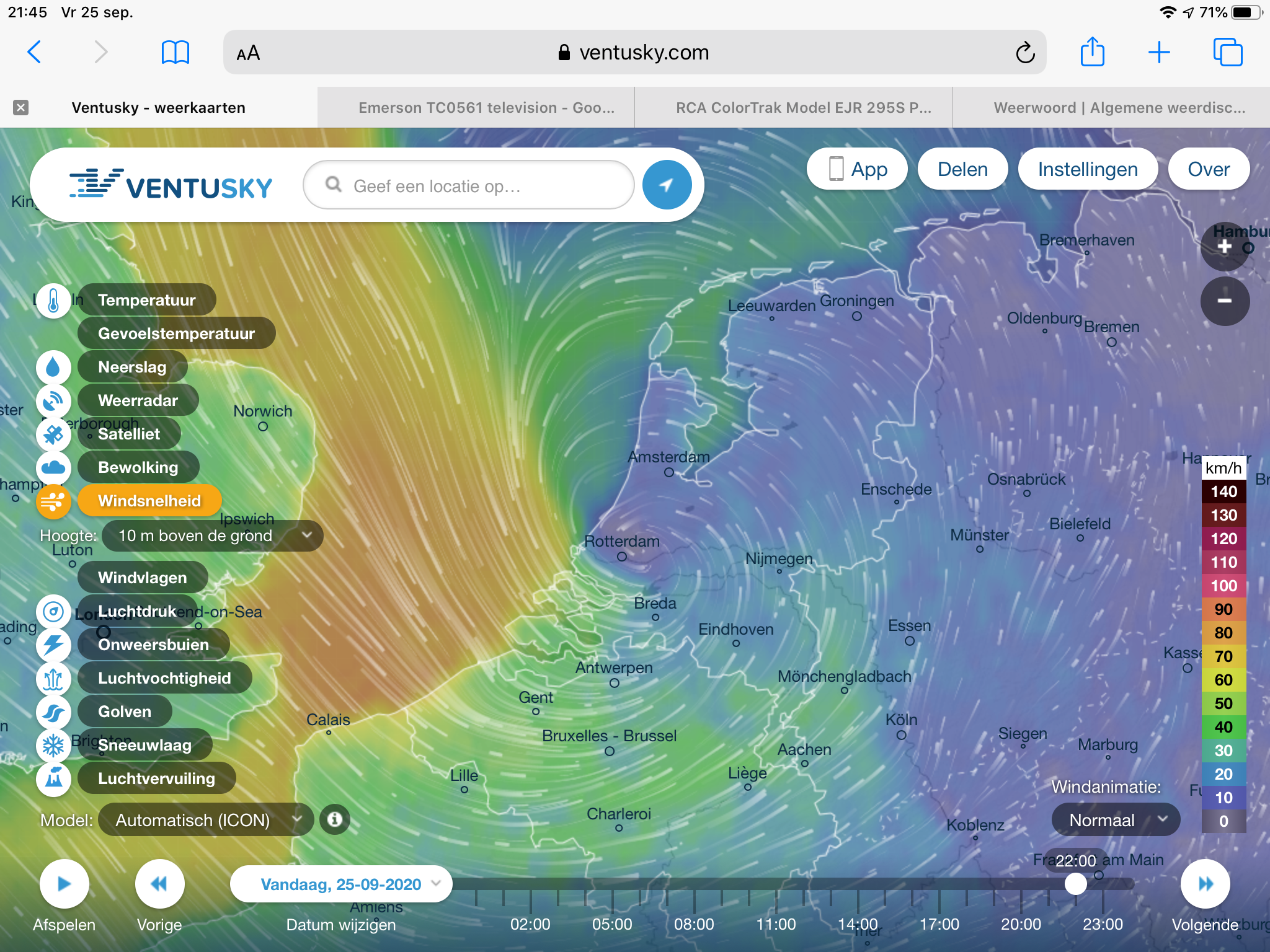 Hoek van Holland windkracht 10 momenteel.