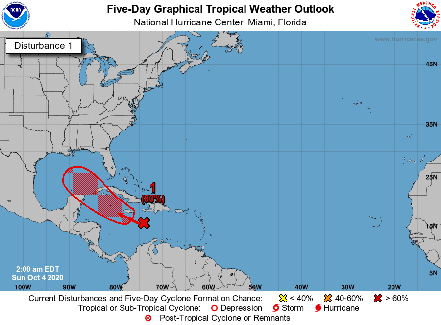 Disturbance 2 bevindt zich onder Mexico, ten Oosten van disturbance 1. Het systeem de komende tijd redelijk stationair blijven. De modellen hebben minder trek in disturbance 1 met maar enkele leden die er een minimale tropische depressie van maken. We weten allemaal hoe snel modellen kunnen omslaan, zeker met stormen, maar ik ga er voor nu vanuit dat als er iets vormt dat waarschijnlijk disturbance 1 zal zijn.