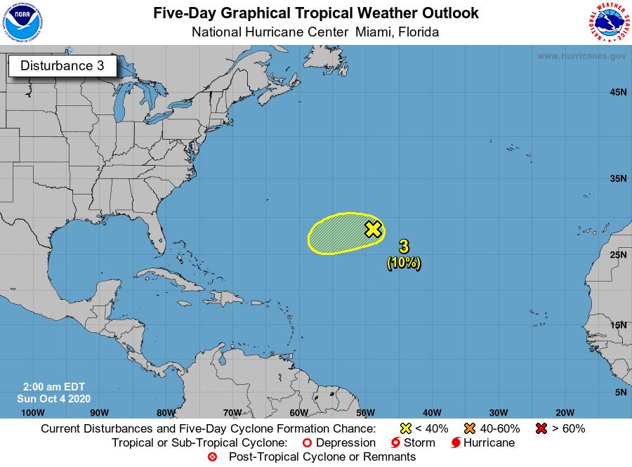 De laatste disturbance bevindt zich ook op de Atlantische Oceaan, maar verder ten Noorden ter hoogte van Florida. En geloof het of niet, maar het lijkt erop dat de disturbance bestaat uit restanten van Paulette. Paulette weet gewoon niet van ophouden. Of de storm ook echt zal hervormen is nog de vraag en om eerlijk te zijn weet ik niet of dit dan weer Paulette genoemd wordt of dat het een nieuwe naam krijgt aangezien de circulatie van de storm vernieuwd is. Het lijkt er echter op dat de kans op hervorming redelijk klein is door, net zoals bij disturbance 2, sterke upper level winds die het lastig zullen maken voor een storm om echt samen te komen.