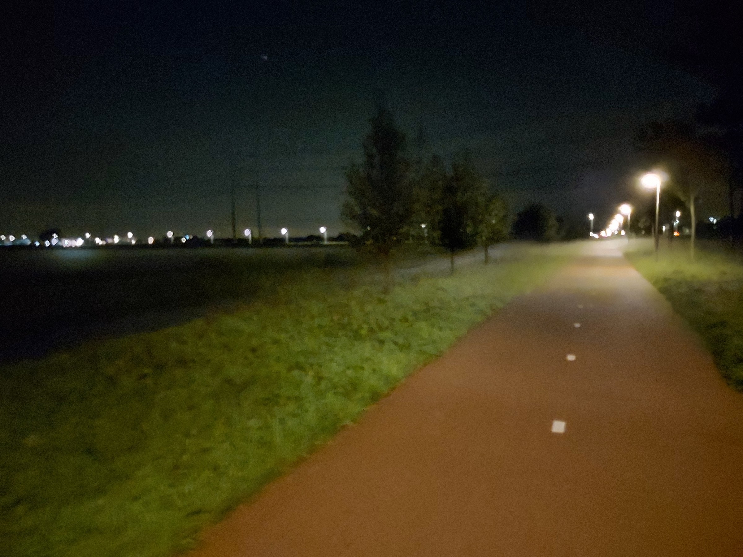 Kunstige mistslierten over de polder en het fietspad. Aan de grond 1.8°C een onvervalste herfst avond.