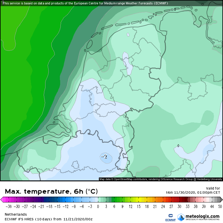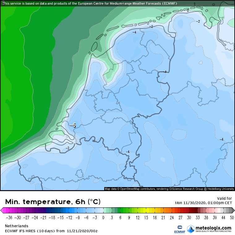 Lokaal tot -6 graden in de nacht en ochtend en op meerdere plekken een ijsdag op de laatste dag van de meteorologische herfst volgens ECMWF. Weinig waarde natuurlijk.