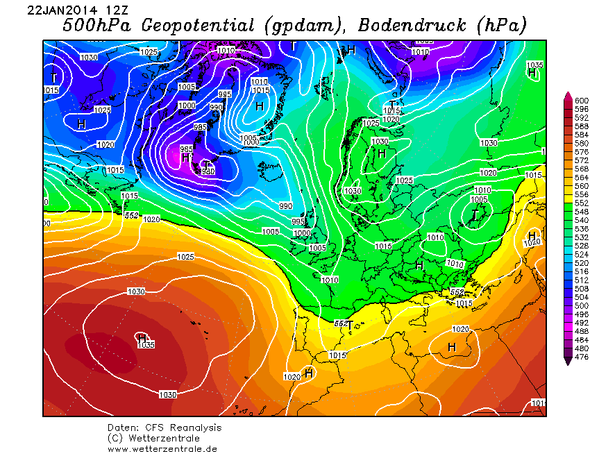 Destijds vrijwel de hele maand januari loerende hogedruk in het noordoosten, zonder dichtbij genoeg te komen.