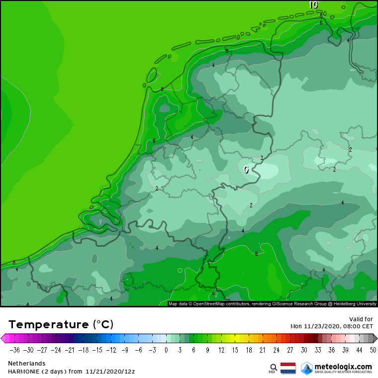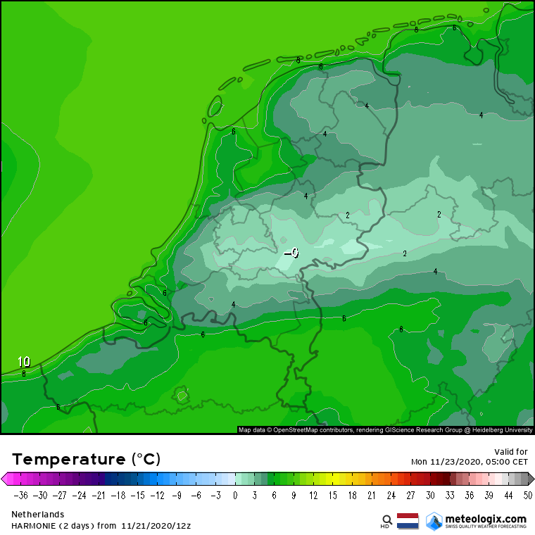Temperaturen die vooral in Nederland richting het vriespunt gaan met waarschijnlijk lokaal ook vorst aan de grond.