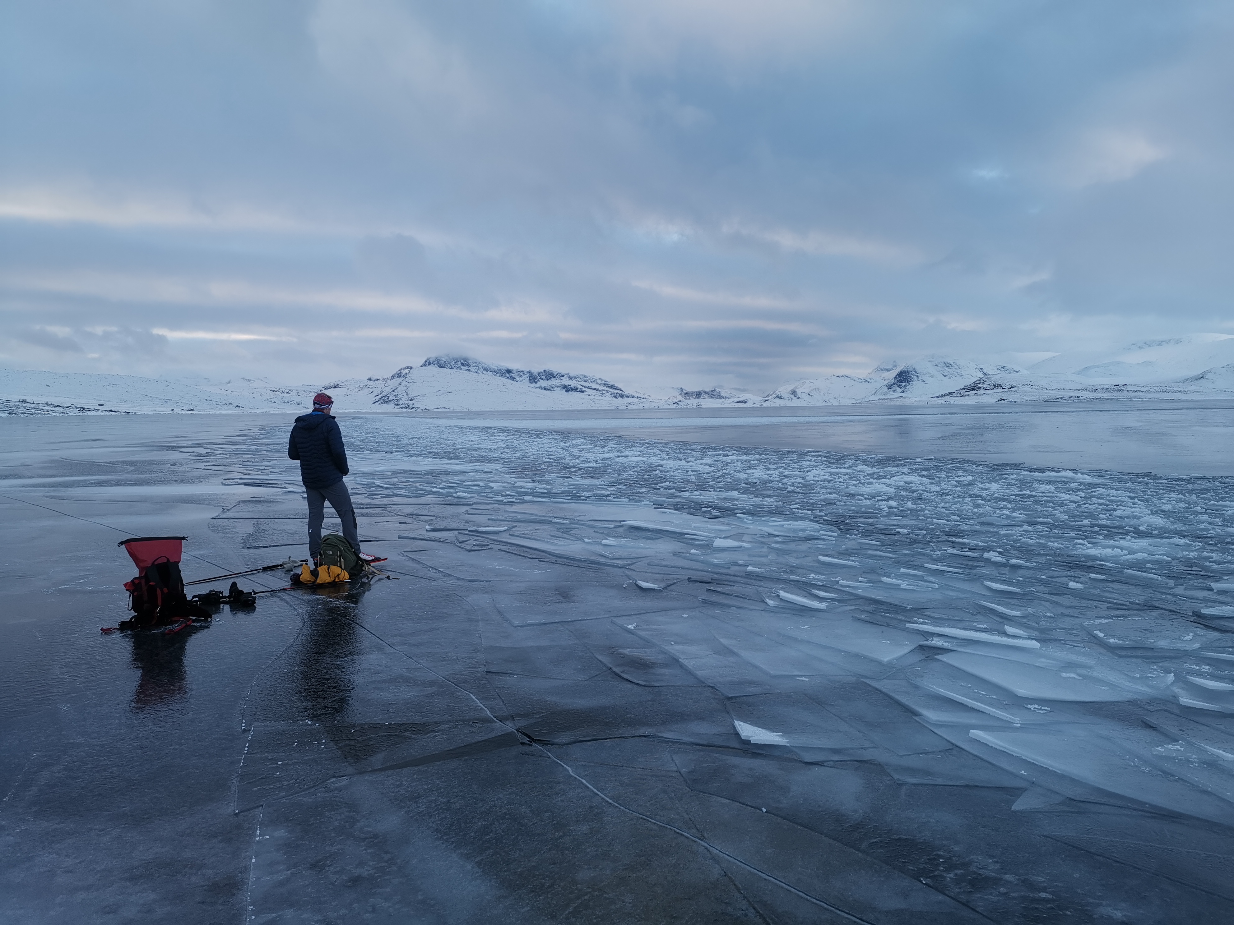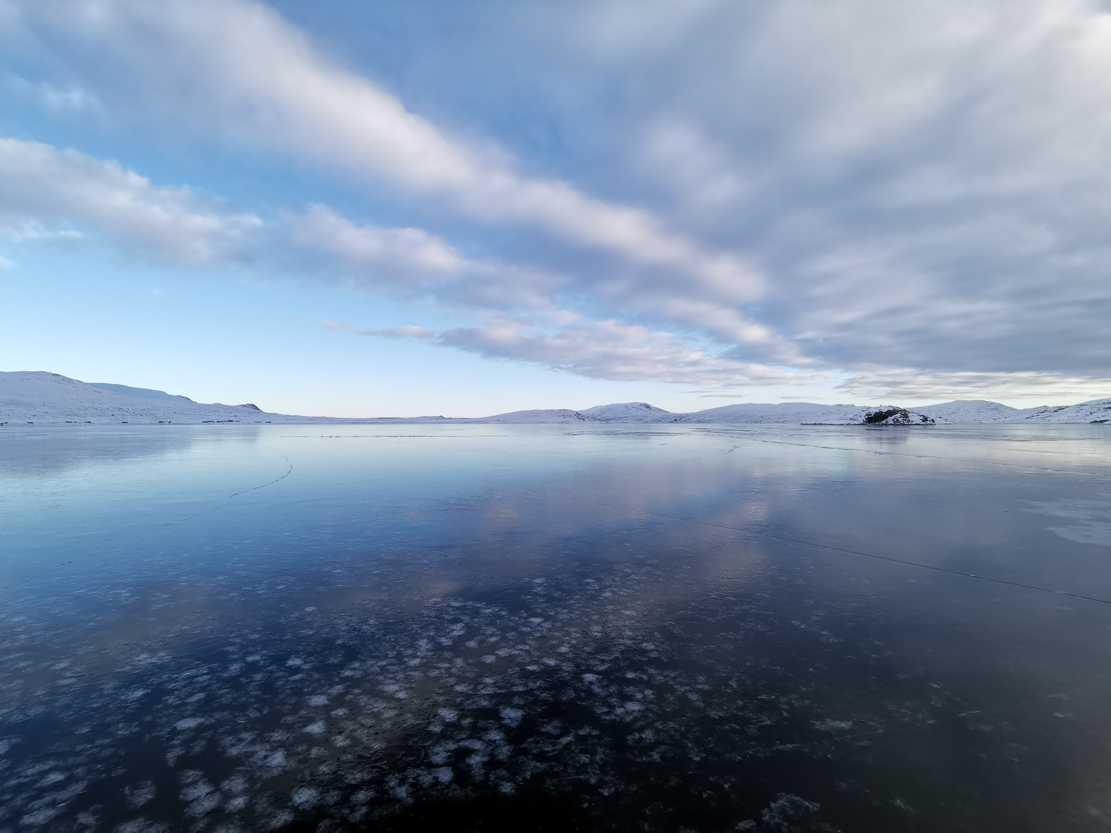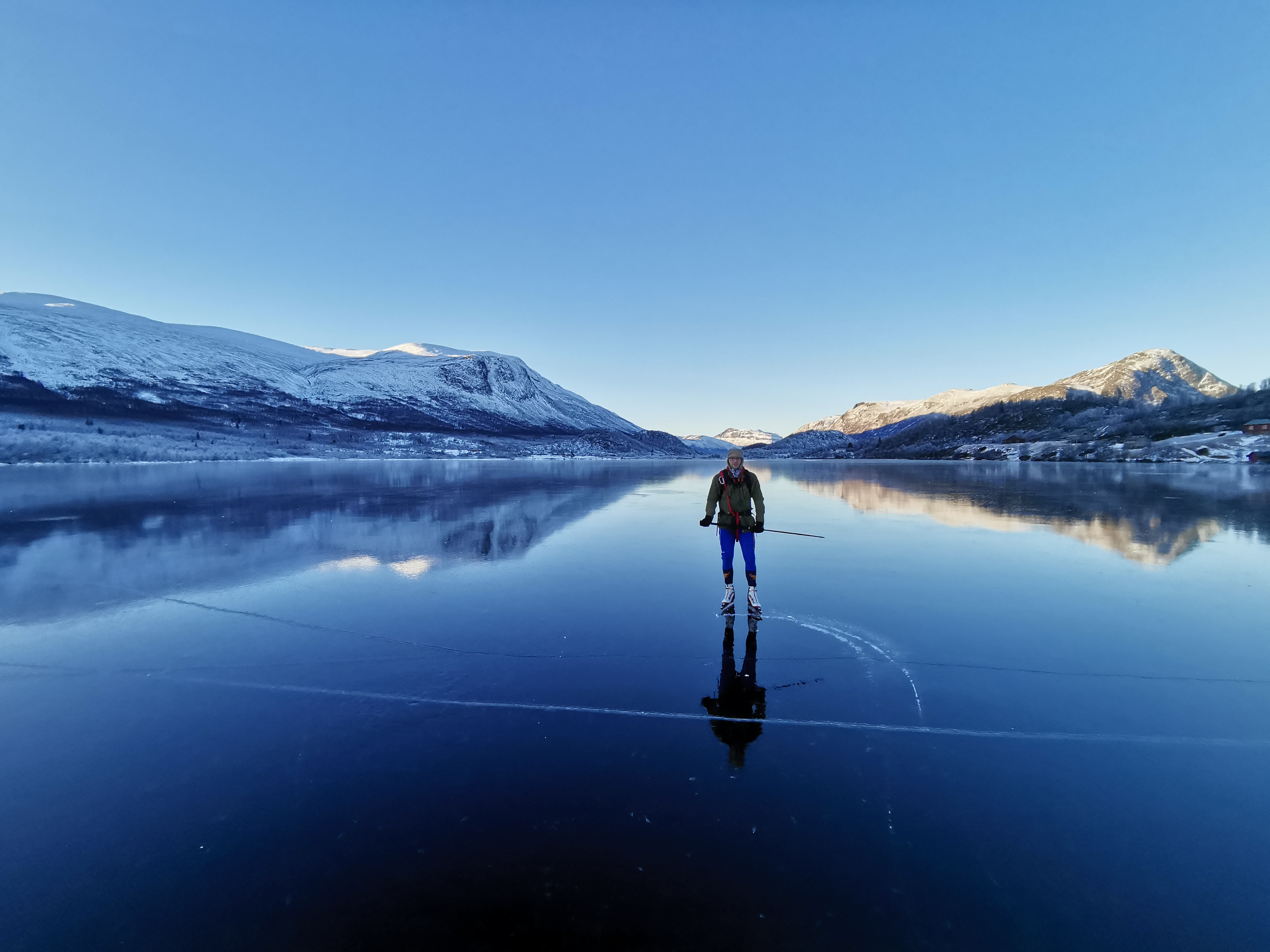 Nou, en of! Zeer grote meren als Storfjorden (13.5 km2) en Vinstre (28 km2) waren in twee a drie nachten volledig dichtgevroren met zeldzame consistentie. Het is ronduit magisch en een beetje eng (ik heb een milde vorm van hoogtevrees) om op zulk helder ijs te schaatsen - je kunt de bodem 8 meter onder je gewoon zien, namelijk.