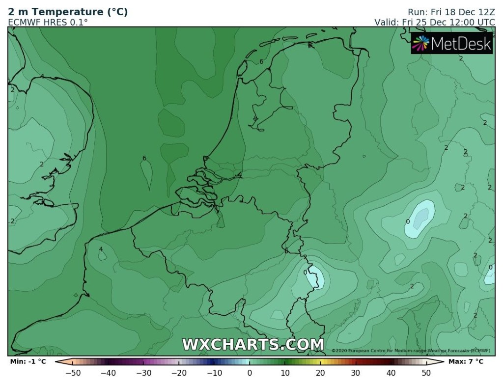 Eerste kerstdag tussen 4 en 6 °C in de middag