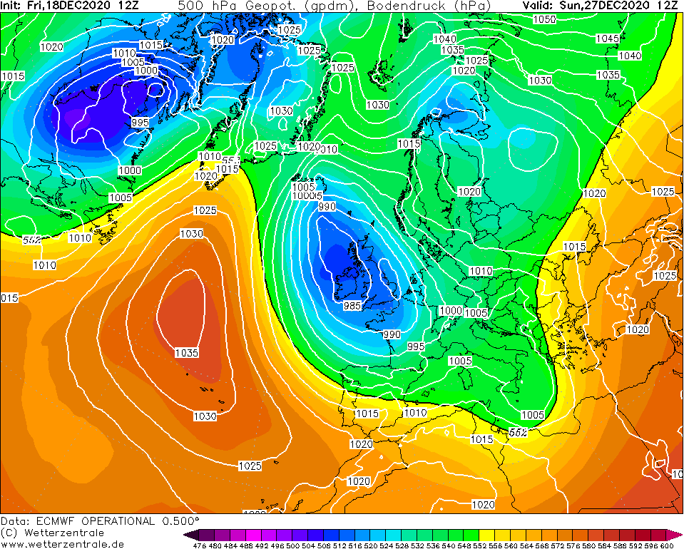 Verbinding tussen de Atl. Rug en het arctische hoog en zakken lagedrukgebied.