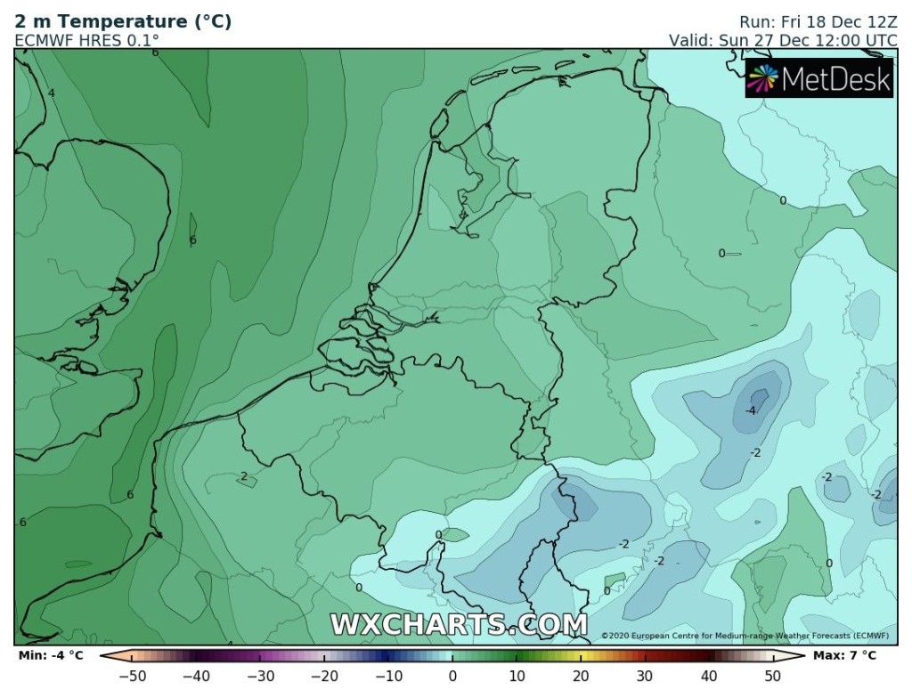 Eerste kerstdag tussen 4 en 6 °C in de middag