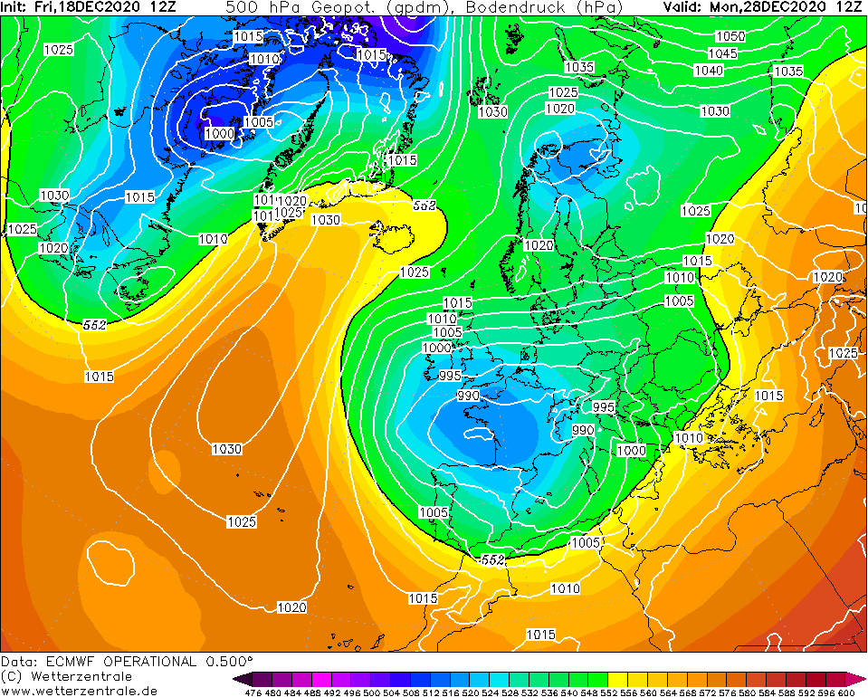 192 hr, daar is het laag onder IJsland   ( 1180)