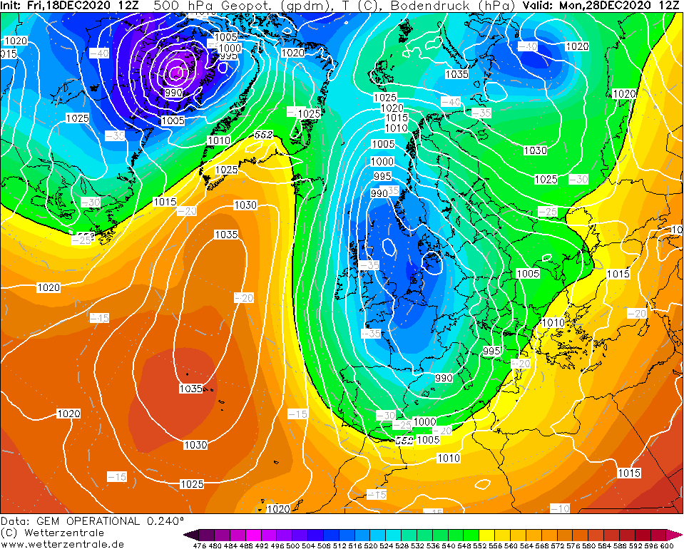 Verschil GFS en ECMWF is behoorlijk op 240 hr.