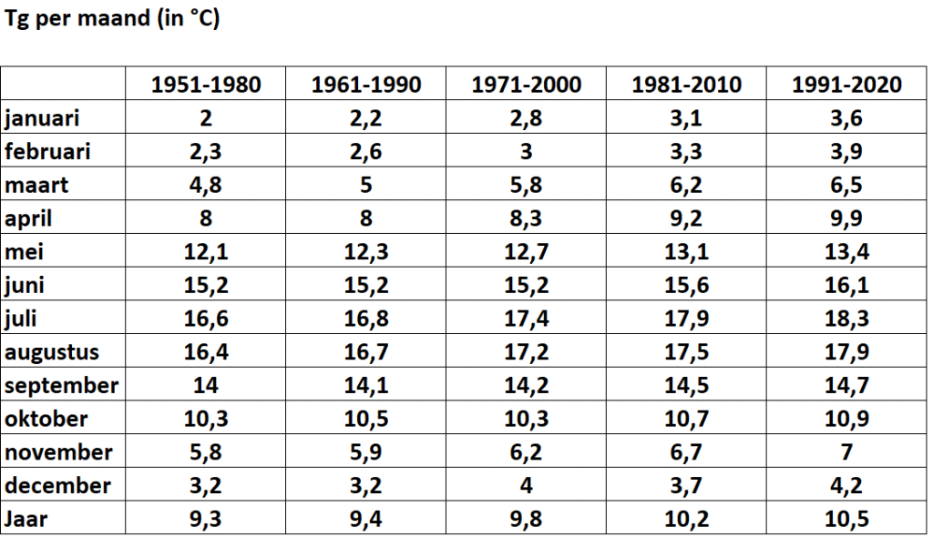 Maar: de temperaturen worden vergeleken met de normaal van 1981-2010. En zo hoort het natuurlijk nog altijd. Maar zouden we de temperaturen met de normaal van 1961-1990 vergelijken dan zou de vergelijking er al anders uitzien. Is hier nu sprake van normvervaging wanneer we toch blijven spreken van licht winters weer?