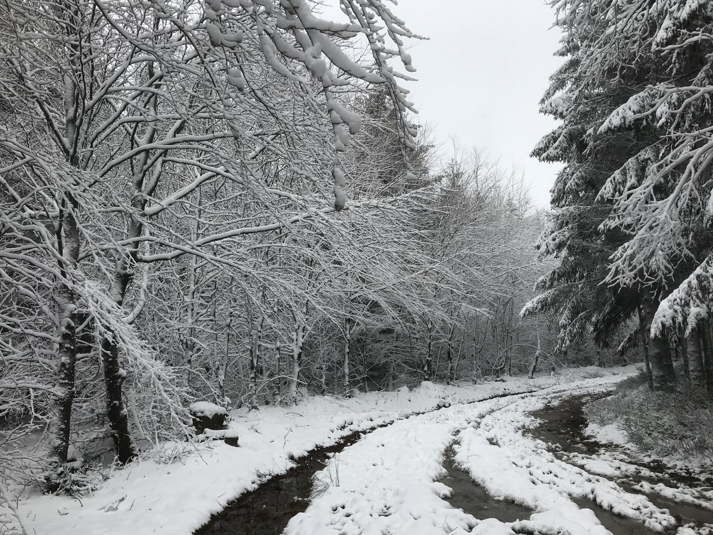 Enkel het laatste stuk naar BM was druk. Veel sneeuw boven 600m en heerlijk knerpend geluid. In de namiddag wat lichte sneeuwval. Morgen wellicht Mont Rigi...
