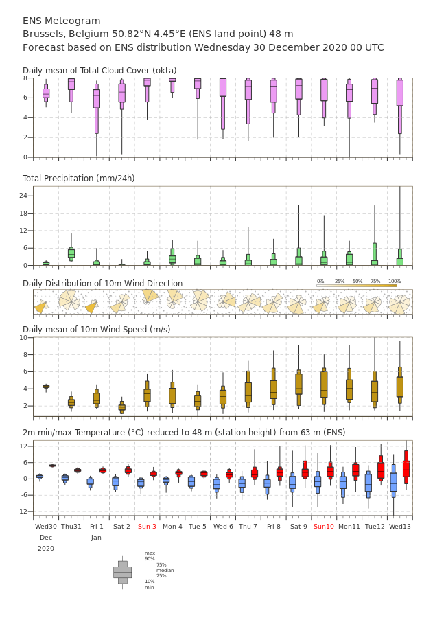De mediaan ligt voor Brussel meestal toch 1 à 2 graden lager dan voor De Bilt. Dat kan over een periode van twee weken wel een verschil maken.