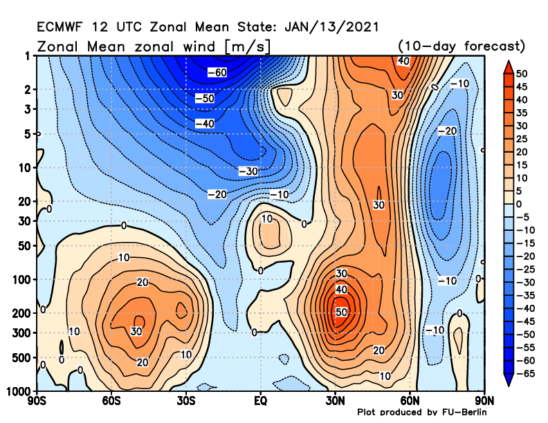 Het wordt vaak aangehaald als het over de stratosfeer gaat: de zonaal gemiddelde zonale wind of zonal mean zonal wind, afgekort met mean u.
