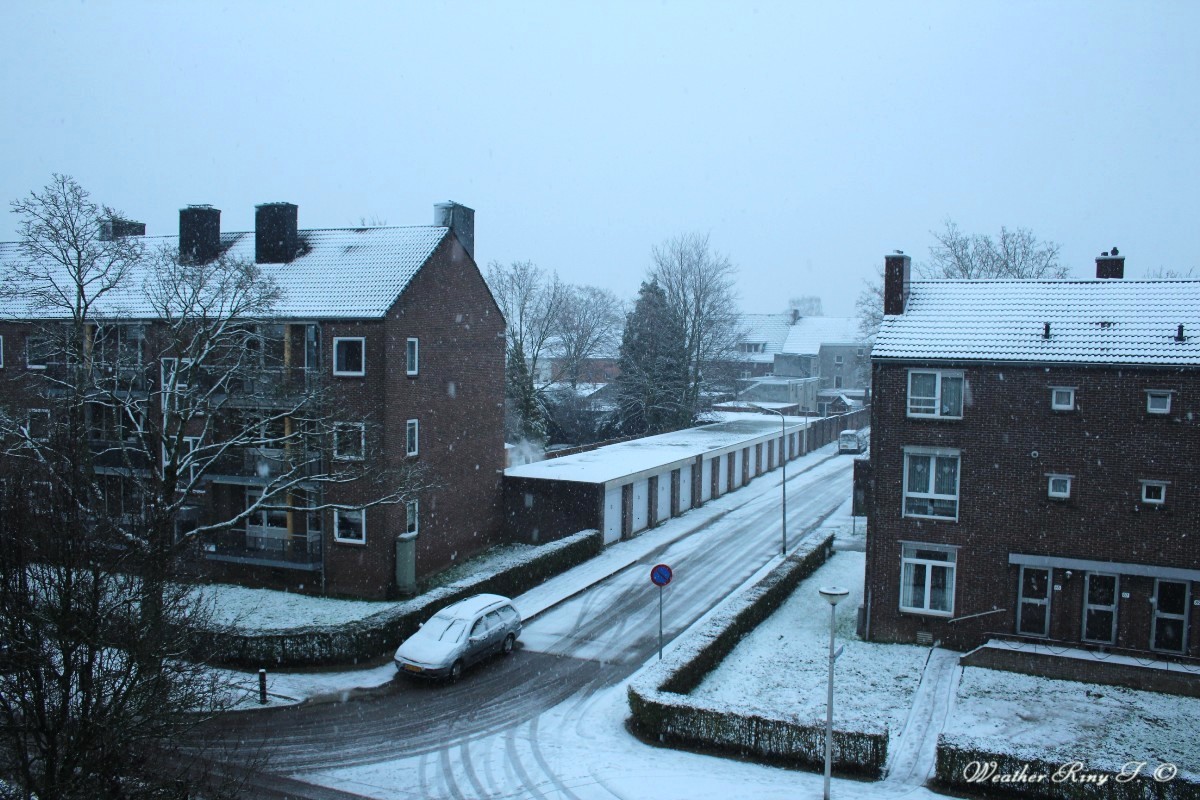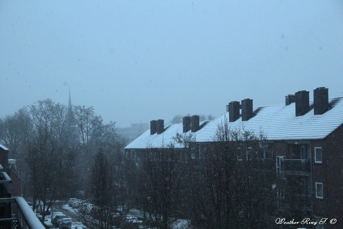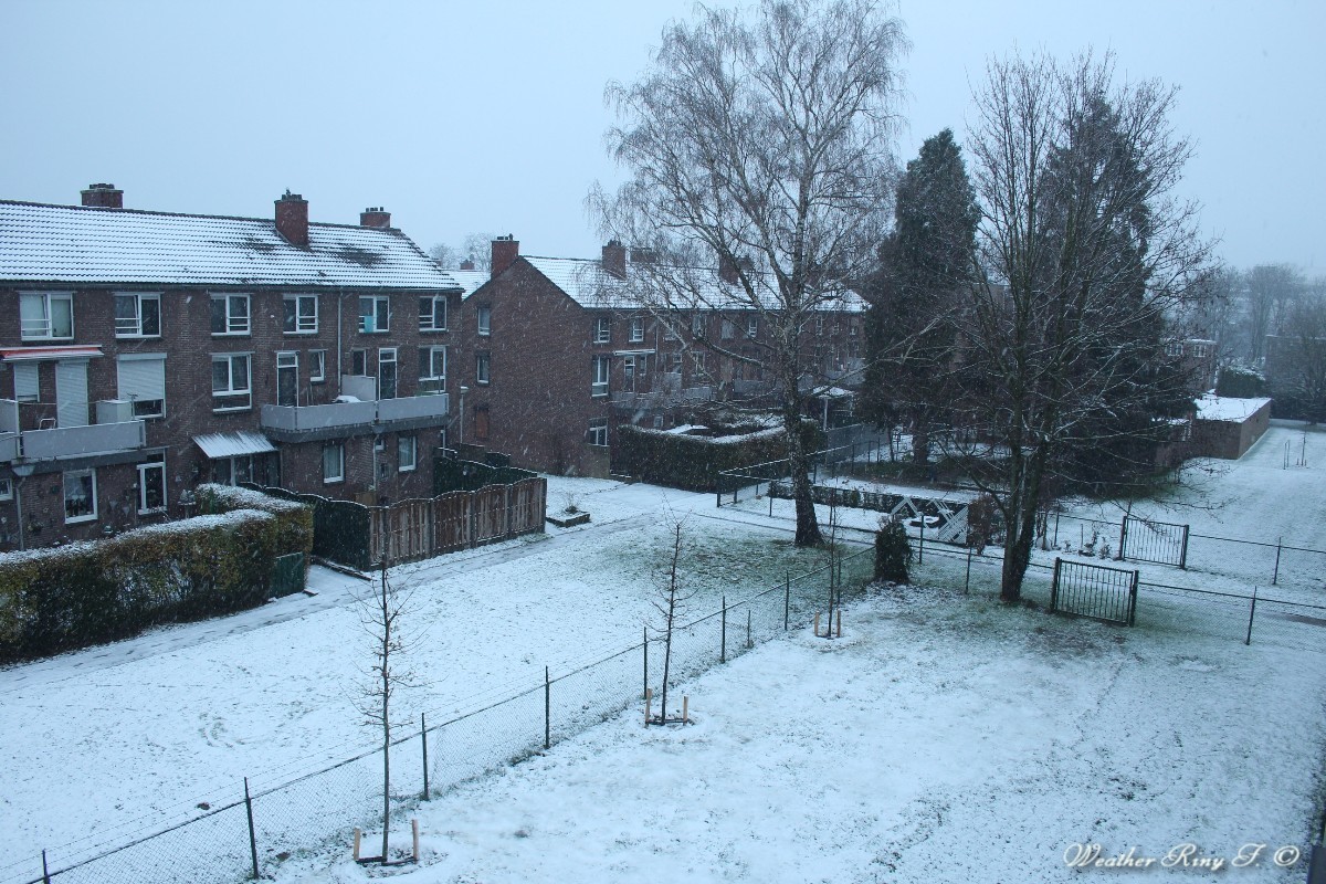 Ook hier sinds in de nacht matige sneeuwval met langzaam groeiende sneeuwdekje (eindelijk!).