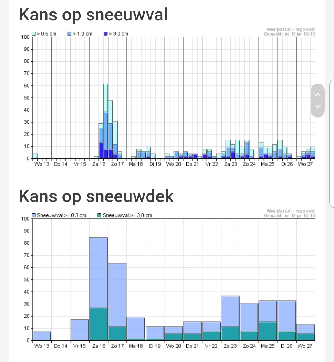 Voor het oosten van het land zie ik ook zondagochtend nog kans op sneeuw. Zou toch mooi zijn als er in de ochtend nog een mooie winterwandeling gemaakt kan worden voor de dooi toeslaat.