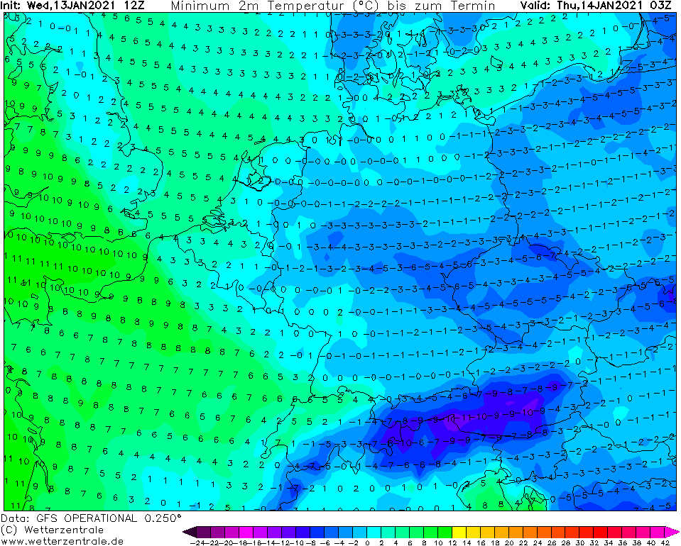 De temperaturen de komende nacht is het eerste wat interessant is. 5 graden vorst voor het noordoosten wordt lastig volgens deze oper.