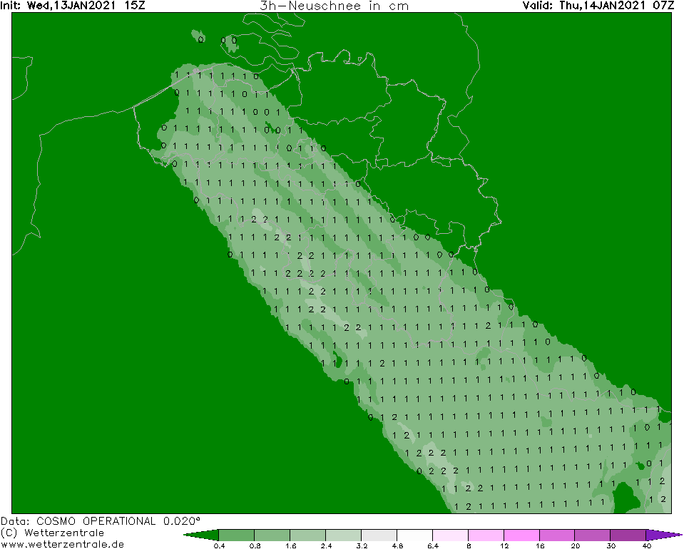 Cosmo geeft het sneeuwdek zuidelijker