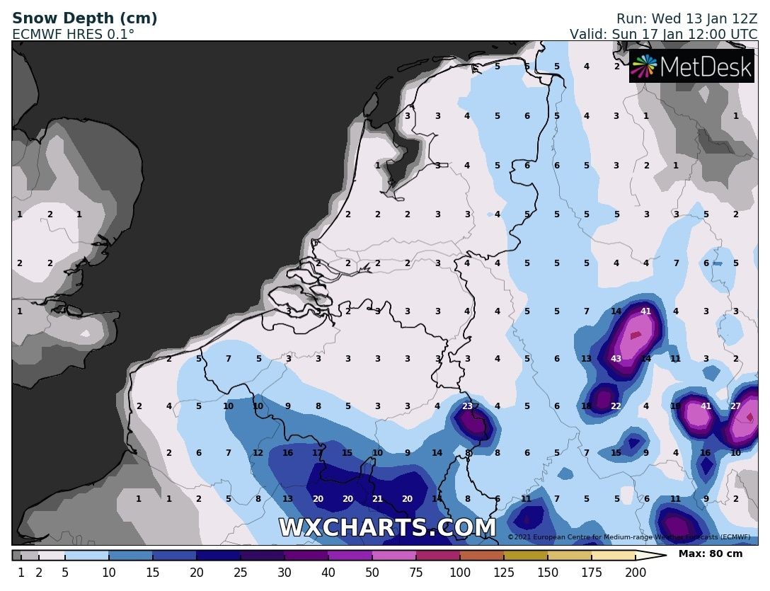 2 kaartjes van hetzelfde tijdstip. Ik zal voortaan de Meteologix kaarten erbij houden. WXcharts is toch vaak traag ook de laatste tijd.