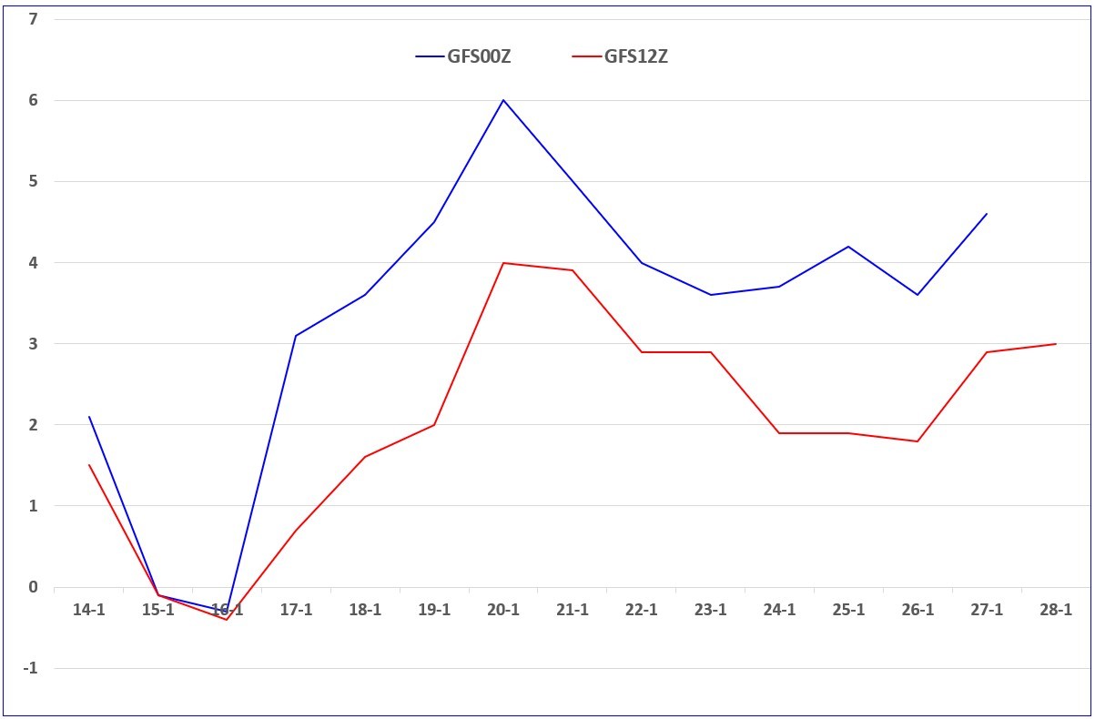 Klopt, flink stuk kouder tov de 00Z run.
