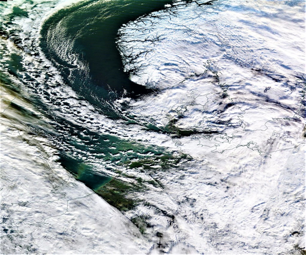 Met het lengen der dagen. Scandinavië nu ook weer wat zichtbaar. (voor mooier beeld even op de foto klikken en dan op de +)