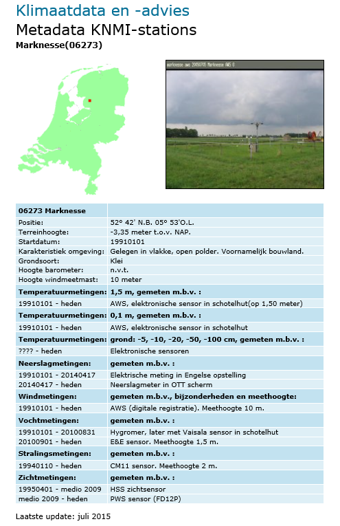 Keer op keer blijkt het KNMI station Marknesse erg af te wijken van de omgeving, alsof het daar nauwelijks wil vriezen. Met -2,2 als winterminimum staat het meetpunt op de lijstjes tussen de stations aan zee. Iemand foto's van de meetlocatie?