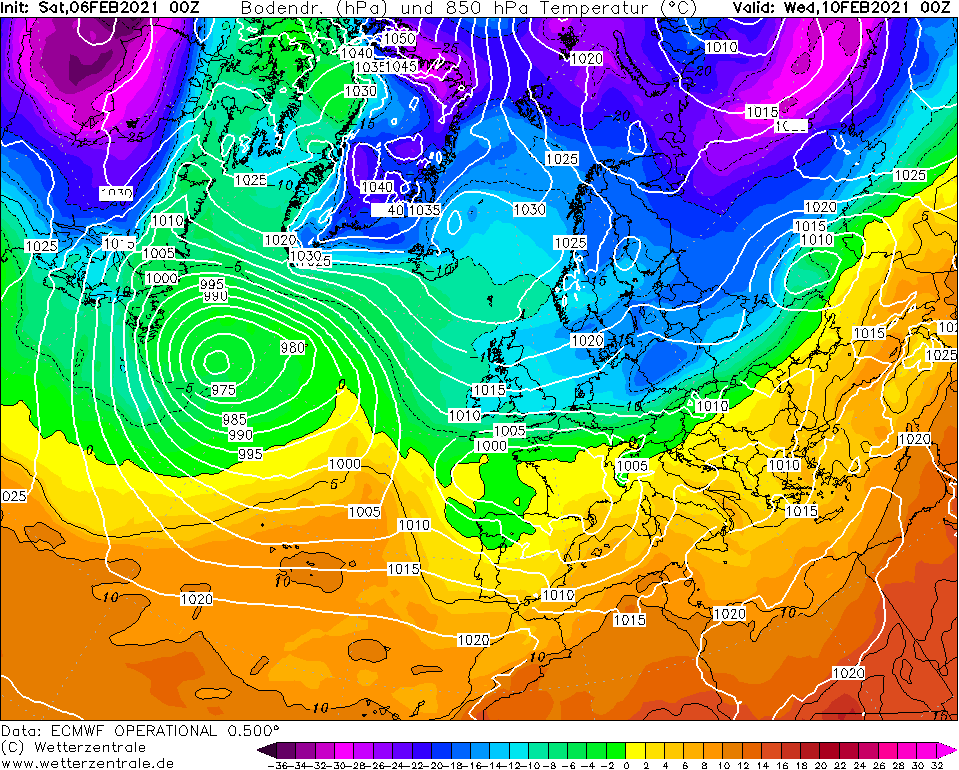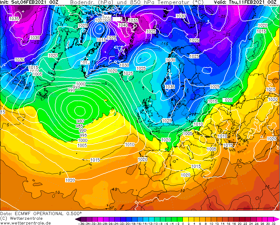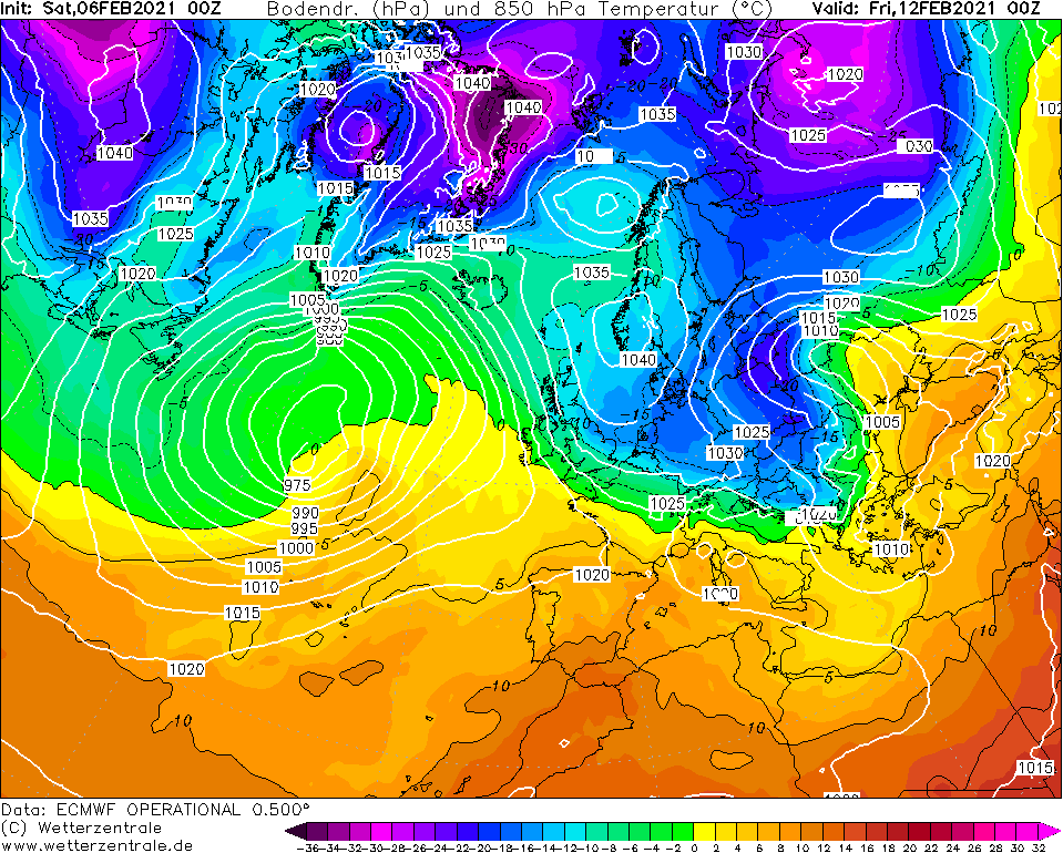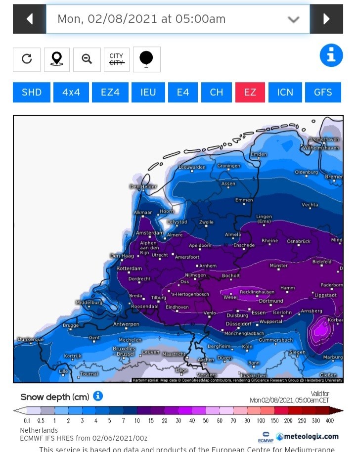 Het monsterhoog boven de Noorse zee en Groenland gaat de komende dagen dusdanig veel pressie zetten dat opkomende depressies vanaf de Atlantische oceaan gedwongen zuidelijk onder de Lage Landen doortrekken. De gehele noordelijke helft van Europa krijgt daardoor met een krachtige oostelijke stroming te maken. De deur voor Koning Winter zijn huisdiertje ook wel 'de beer' genoemd staat niet meer op een kier maar wagenwijd open. En de beer heeft geen genade meer, na jaren te zijn geweerd uit de Benelux mag hij nu aan zijn feestmaal beginnen. De eersten die ten prooi vallen eraan zijn de mensen in noord Nederland. In deze regionen is de gevoelstemperatuur nu al dik onder 0. De krachtige oostenwind zal nog lang niet gaan liggen en zeker tot woensdag moet men in de open gebieden rekening houden met lage windchills en koude die tot je botten geraken en diep doordringen in al je vezels. Bepaalde leeftijdscategorieën kinderen krijgen een weertype te zien dat hen totaal vreemd is. Als de trend zich doorzet zal dit ook gelden voor mensen die eind jaren 80 zijn geboren. Want, als de laatste EC run bewaarheid wordt, krijgen we een winteroffensief dat misschien de koude winter van ’97 zal overtreffen. Vind je dat een boude uitspraak? Dan zou ik aanraden zelf eens te bladeren door de laatste ECMWF run. Hij is ongezien koud. En het meest in het oog springende is nog wel de duur van deze koudegolf. Waar het er eerder op leek dat de kou snel verdreven zou worden door opdringerig wordende depressies zien we nu bij veel uitvoer een krachtig hogedrukgebied in de buurt van Scandinavië ontstaan. Hierdoor krijgt zuivere transportkou de kans om diep door te dringen in Nederland. De temperaturen op hoogte zouden nog wel eens tot -17 kunnen dalen. Daarbij gaat het in de loop van de werkweek ook steeds meer opklaren en kan overdag de zon gaan schijnen. De wind wordt uiteindelijk aan banden gelegd en boven een dik pak sneeuw zal uitstraling ervoor gaan zorgen dat op sommige plaatsen recordlage temperaturen gemeten gaan worden. Ik verwacht op uitgebreide schaal zeer strenge vorst en een enkele plaats zal tussen donderdag en zondag de -20 graden gemeten gaan worden. Vergis u niet in de potentie van deze kaarten, het zou ook nog kouder dan -20 kunnen gaan worden. Een absoluut hitterecord in 2019 en een absoluut kouderecord in 2021? Het zal wat zijn. Om dat record te breken moeten we richting de -30. Ik had niet verwacht dit ooit nog te gaan schrijven, maar het behoort tot de mogelijkheden als de uitvoer consistent blijft.