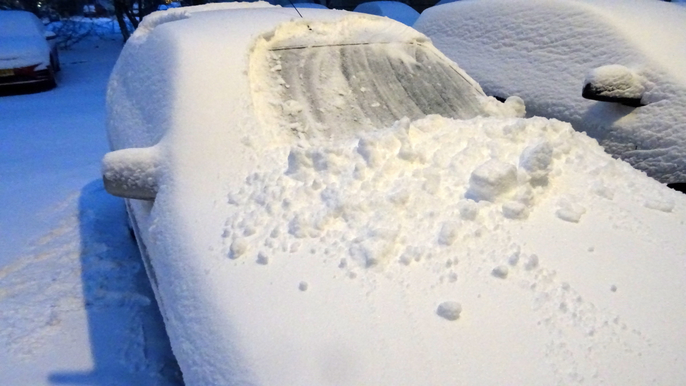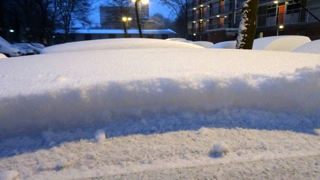Lastig te zeggen hoeveel sneeuw er is gevallen, maar ik schat 7 á 11 cm. Er is het nodige verwaaid. De weerbureau's zaten juist. Die 25 cm voor mijn omgeving waar GFS gisteren nog mee kwam, ik heb dat meteen al terzijde geschoven.
