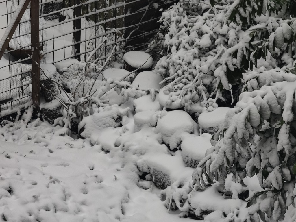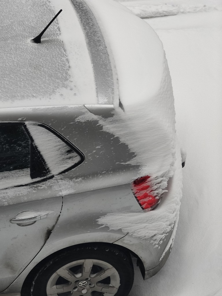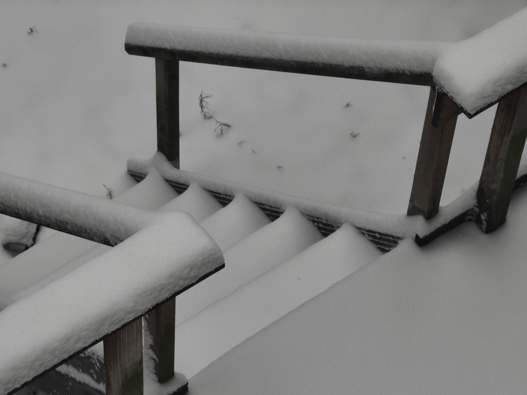 Lichte sneeuw bij 6 bft en -4°C, stuift af en toe mooi van de daken. In de luwte een mooi dekje. IJzige kleine sneeuwkristallen.