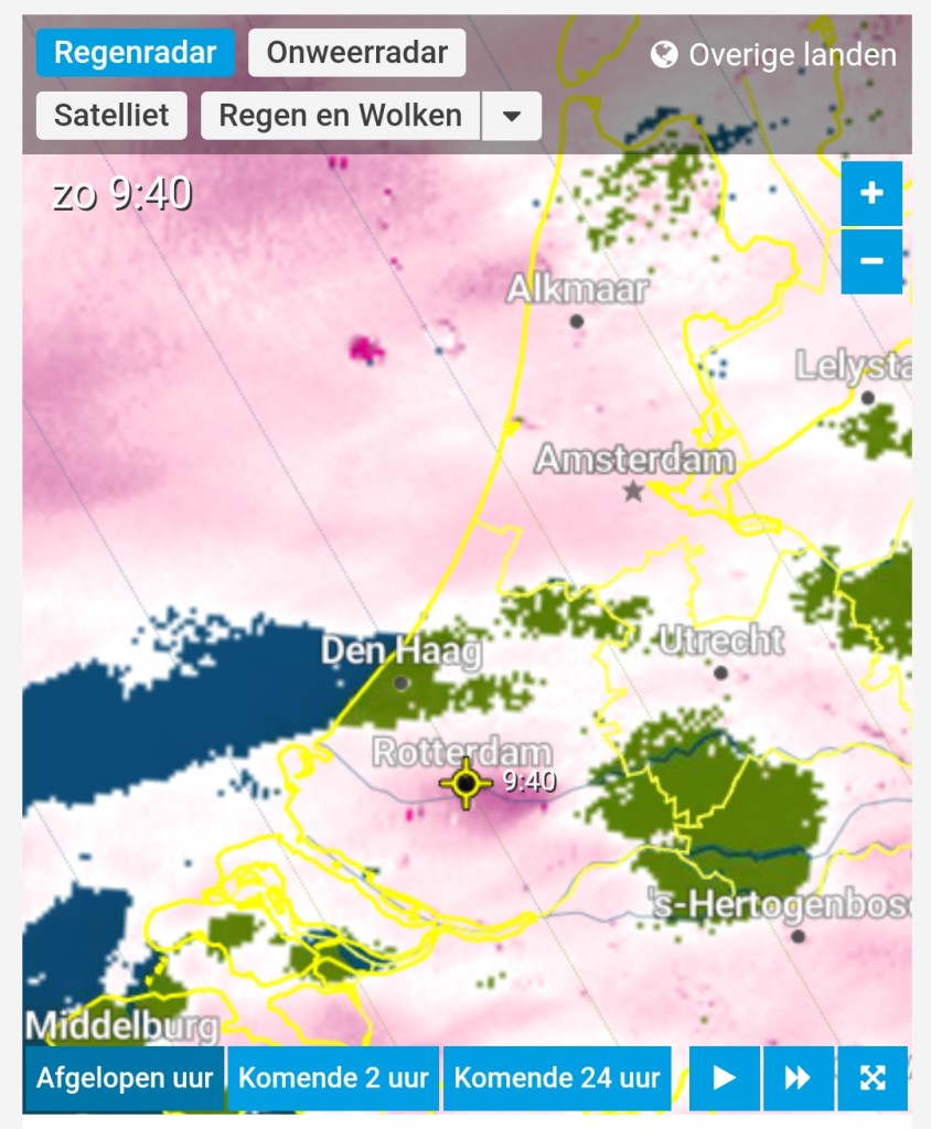 Al is het lastig inschatten: de sneeuw waait ook nog eens met een flinke wind naar het westen vanaf onder de wolkenbasis.