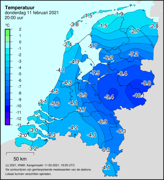 Fluctueert in Hupsel. Was al ruim - 11 graden.