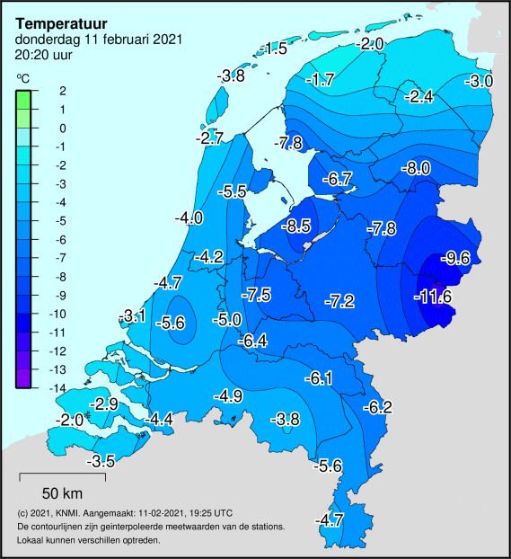 Fluctueert in Hupsel. Was al ruim - 11 graden.