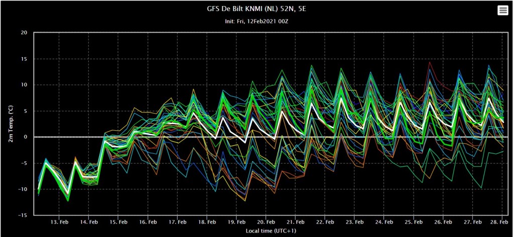 GFS ensemble 00Z. Zo snel de winter er was, zo snel...