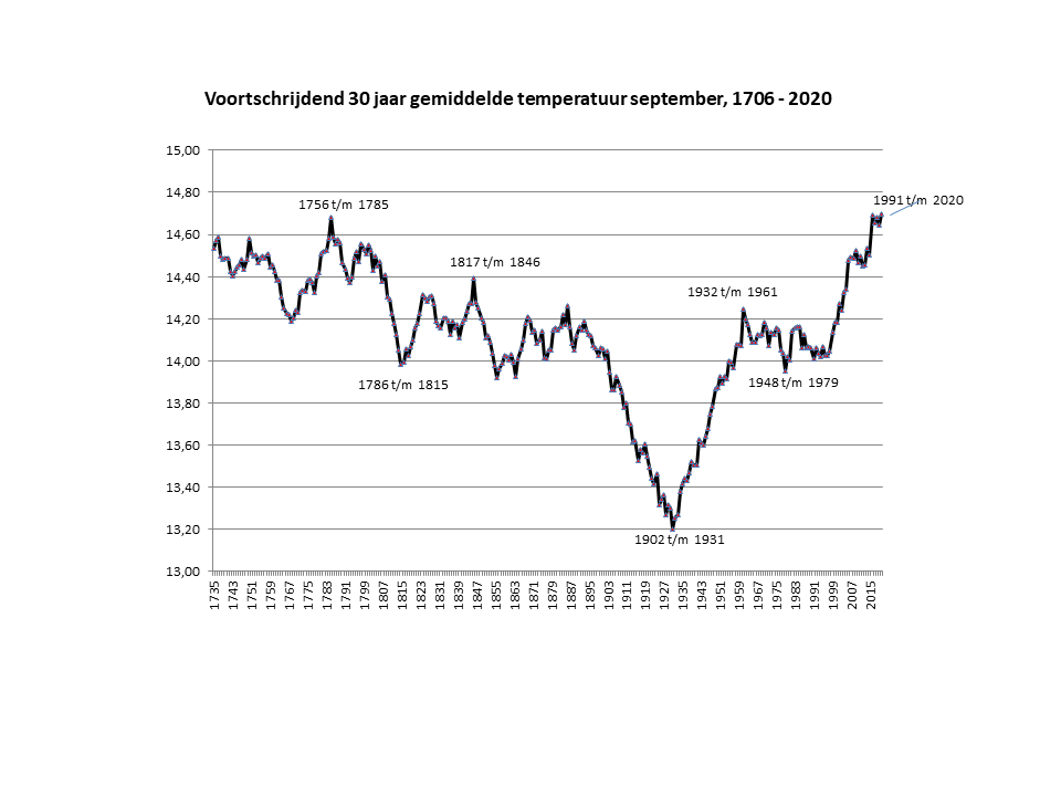 Kijk, volgens deze grafiek is september (op een dip in de 1e helft van de 20e eeuw na) thermisch zo goed als niets veranderd.