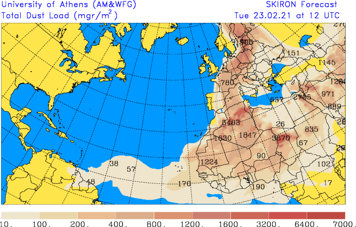 Weet iemand hoe het morgen zit met de concentraties Saharastof?