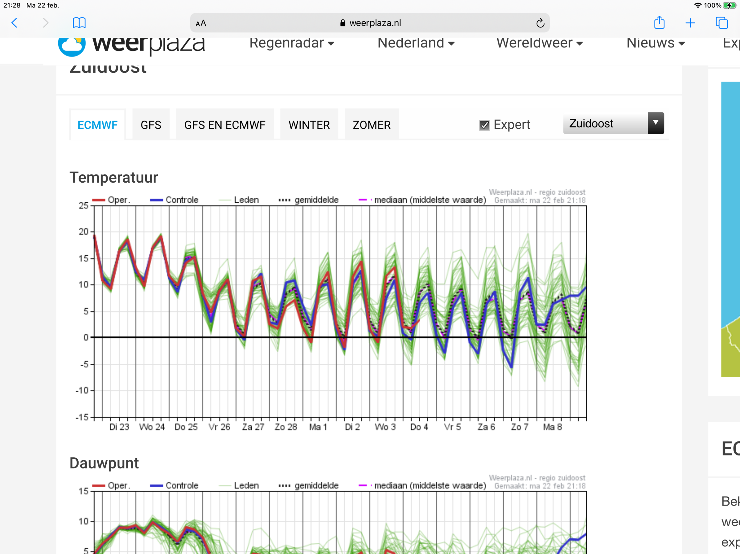 Re: EC temperatuurpluim Midden en Zuidoost avond 22 februari 2021