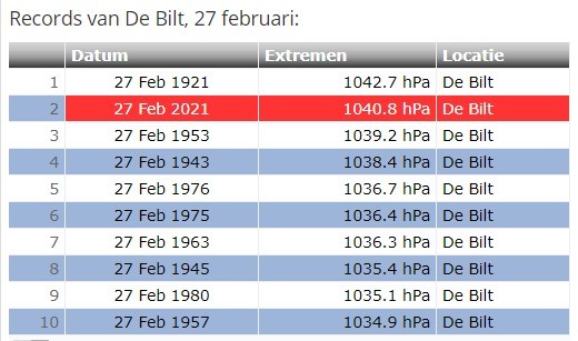 Flink hoge barometerstanden dus vandaag