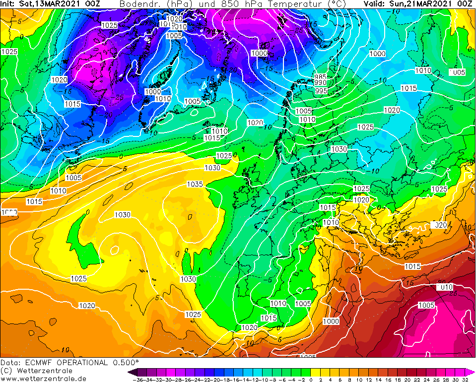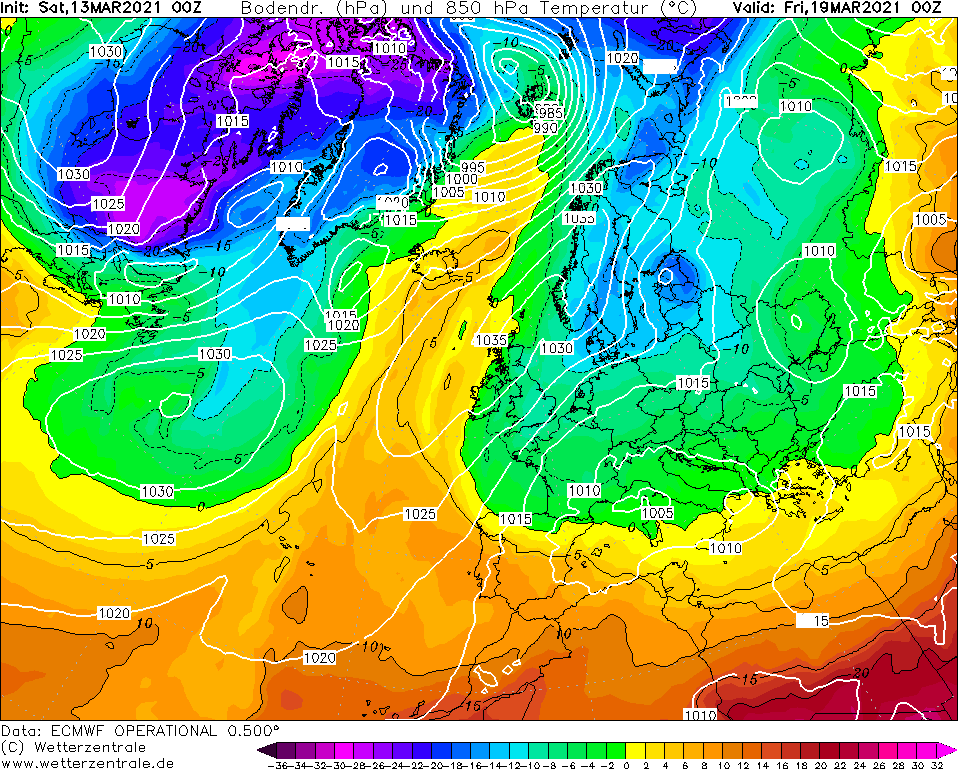 koude lucht uit het noorden, laag in MZ en oostenwind