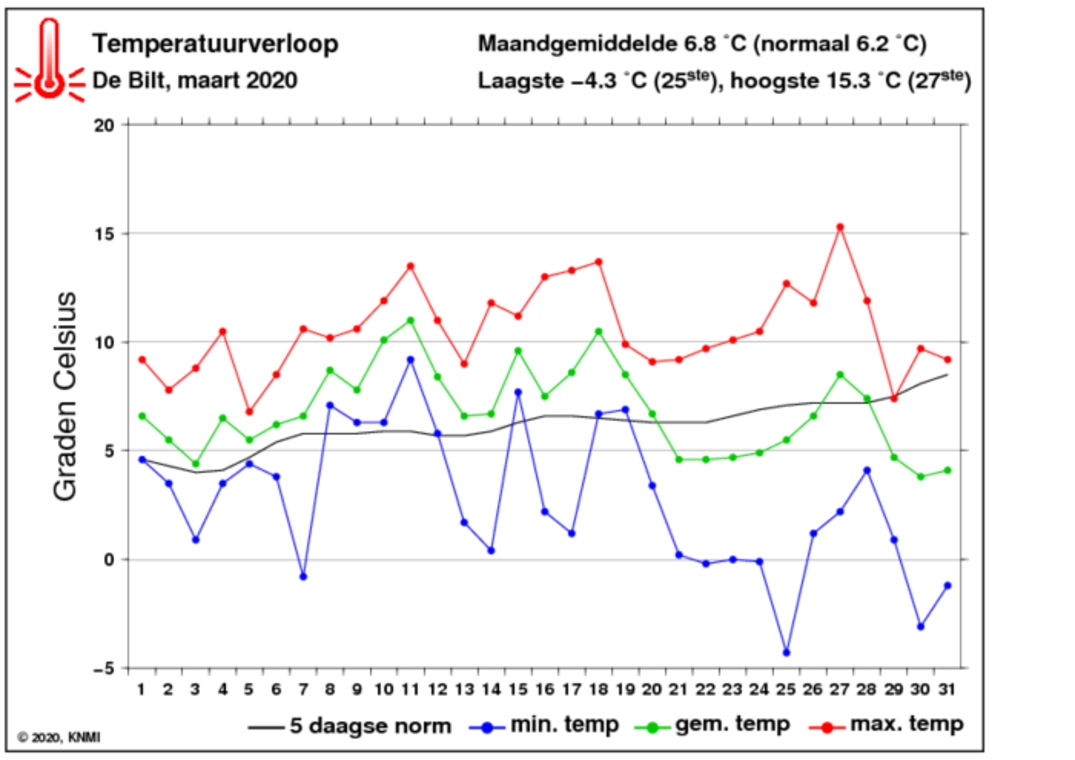 Na een winter van niks in de 2e helft van maart nog eens koude noordoostenwinden met stevige nachtvorsten. Dan hoeft het niet meer, ook niet voor de natuur. Tegen de epidemie zou het snel warm en zonnig moeten worden.