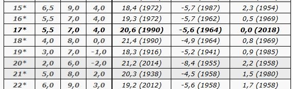 Juist op 20 maart staat die zeer scherp. We zien ook dat de andere dagen een tn record hebben van iets meer dan -5c. Afgezien van 21 maart, dan -4,5c.